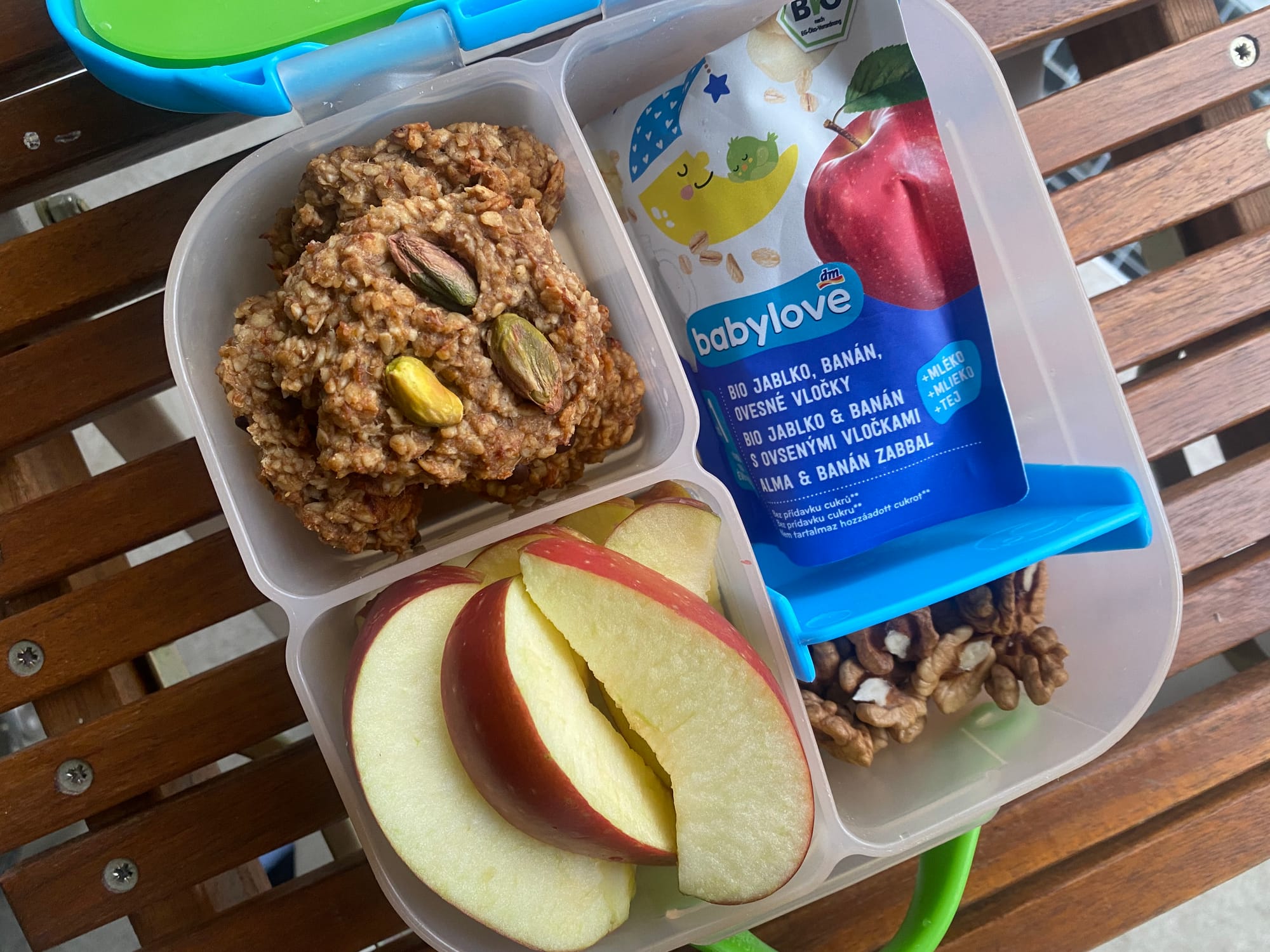 Za mě jsou tyhle sušenky skvělé také do svačinových krabiček. Nelepí, skoro se nedrobí, jsou plné energie a moje děti je milují.