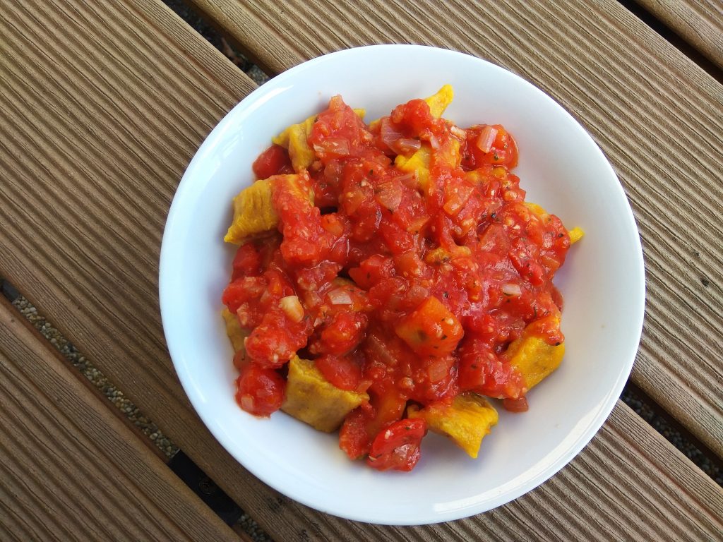 Úplně jednoduše do rendlíku nakrájíte nadrobno cibuli. Necháte mírně na lžíci oleje zezlátnout. Následně přidáte sklenici rajčat a bylinky. Následně společně prohřejete. Na závěr se jen protlačí česnek, dochutí solí a pepřem a je hotovo.