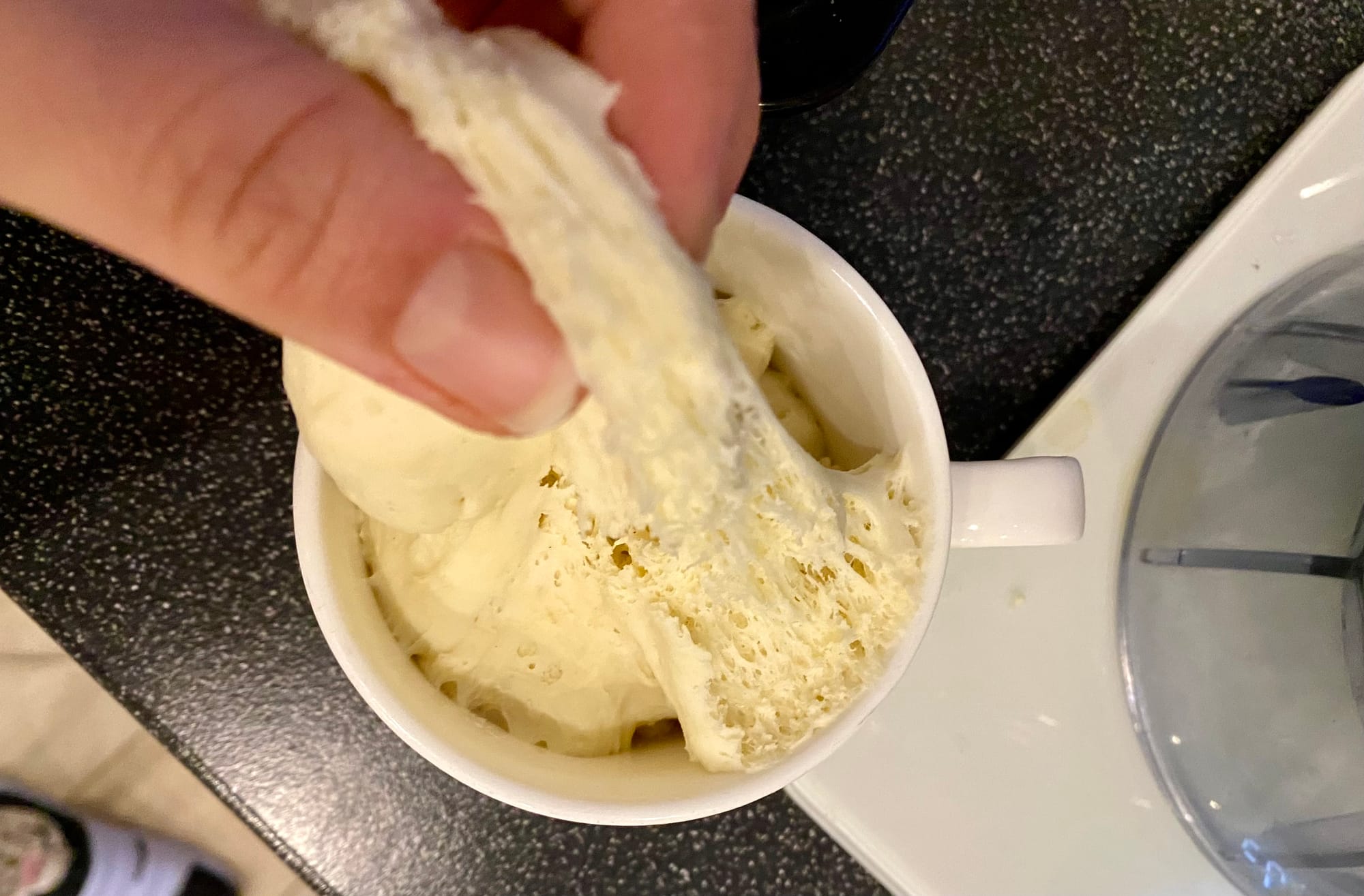 Protože je LM tuhé, nejlépe se s ním pracuje v mixéru. Natrhám ho do nádoby, zaliji mlékem a rozmixuji dohladka.